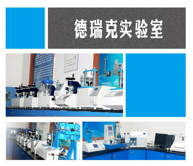 德瑞克除了擁有完善的科研、生產(chǎn)團(tuán)隊(duì)和標(biāo)準(zhǔn)車(chē)間外,還擁有一個(gè)國(guó)際化的標(biāo)準(zhǔn)實(shí)驗(yàn)室。實(shí)驗(yàn)室總面積約200m2,配備了紙品包裝檢測(cè)儀器60余臺(tái),總價(jià)值超過(guò)1000萬(wàn)元,涵蓋抗壓、強(qiáng)度、拉力、耐破、耐折、厚度、撕裂、柔軟度、戳穿、平滑度、剝離、水分、壓縮、熱封、密封等多類(lèi)檢測(cè)項(xiàng)目。